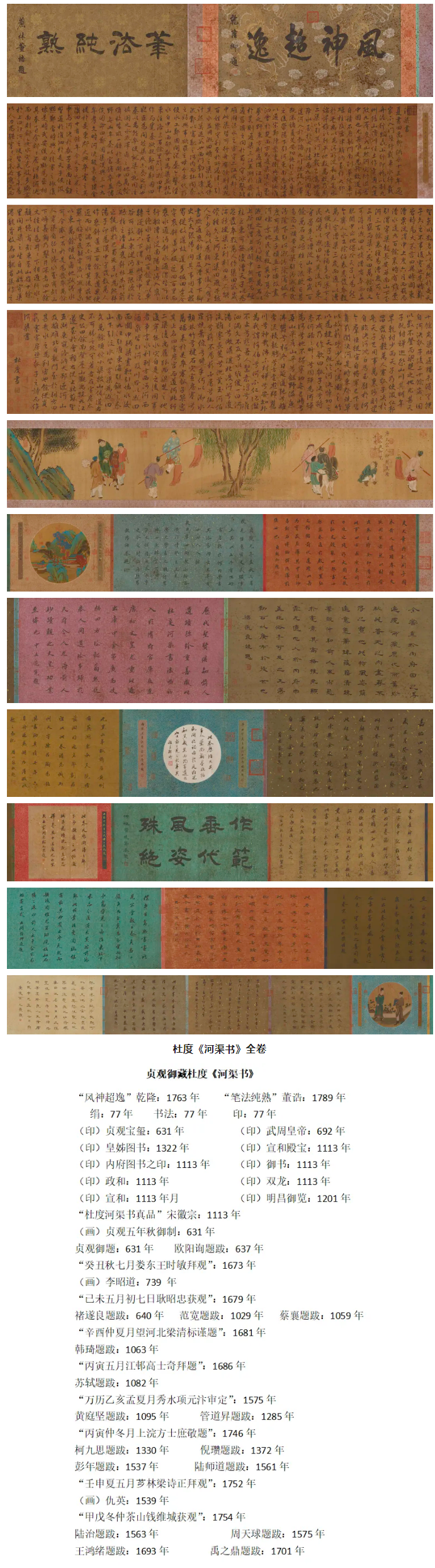 乾隆重裝時收入唐太宗李世民的人物畫絹本長卷,署“貞觀五年秋御制”,鈐“李世民”白文小方章。